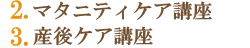| 産後ケア講座 | 98,000円(5時間×3日間) 対象:どなたでも |